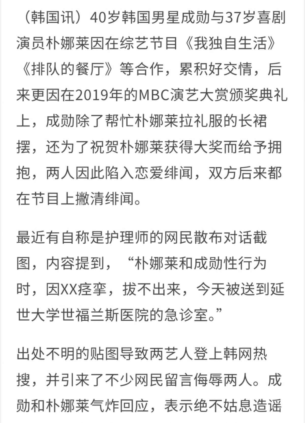 2023年,一个自称护理师的账号在网络上扔了颗炸弹。内容直指朴娜莱和成勋。爆料说两人因为亲密行为出了意外,被送进了延世大学的急诊室。消息传开那会儿,讨论的声浪几乎要把屋顶掀翻。互联网上什么声音都有,猜测、嘲讽、难以置信,混成一团。但这事很快就被按下了。两位当事人几乎没怎么耽搁,就各自发表了声明。声明里的意思很明确,就两个字,没有。他们否认了传闻里的一切。急诊室的故事,到这里就戛然而止了。后来再没什么后续。就像很多突然炸开又迅速熄灭的网络话题一样,留下一点烧焦的痕迹,然后被新的信息覆盖过去。公众人物的私生活边界,永远是模糊的战场。真真假假的信息在里面翻滚。有时候你甚至分不清,是事实先出现,还是人们的谈论先塑造了某个事实的轮廓。它出现过,被否认过,然后停留在2023年的某个时间点上。至于当时急诊室的门后究竟发生了什么,或者什么都没发生,外人永远无从确认。能确认的只有那份公开的否认。以及事件本身所展示的那种,当代网络传播特有的、剧烈的、又迅速褪色的热度曲线。它成了一个标本。